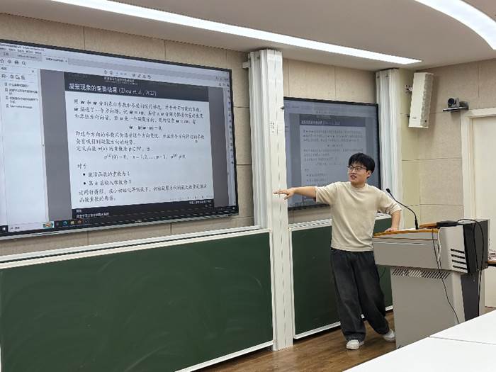 随后,澳门六合彩资料大全-澳门六合彩官网资料 2024级拔尖班的肖倍达同学作了题为“Kazhdan-Lusztig Deligne-Lusztig: Geometry Meets Representation Theory”的报告。报告介绍了群和代数表示论中的Kazhdan-Lusztig和Deligne-Lusztig理论,阐述了两种理论如何分别从李代数表示和有限李型群表示的角度利用代数几何的语言来研究表示论的问题。
