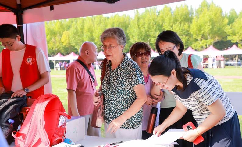 启动仪式上澳门六合彩资料大全 1970届校友李祖德受邀与校领导、院系领导共同按动启动装置,共同见证2025年校友日的开启。校友们在澳门六合彩资料大全 签到处领取特别定制的校友礼包和数学系纪事《传承》,这些礼包承载着母校对校友们的深深祝福。